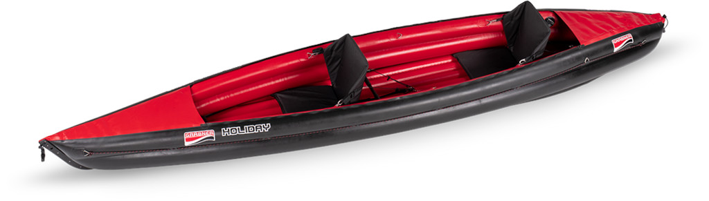 Das Grabner Holiday ist ein vielseitiges Luftkajak mit klassicher Formgebung für Touren auf Seen und Flüssen. Dank der schlanken Form gleitet es sehr gut und kann sowohl als Zweier-Kajak als auch als Langeiner genutzt werden, da serienmäßig Haltebschläge für Sitz und Fußstemmbügel für die mittige Einersitzposition vorhanden sind.