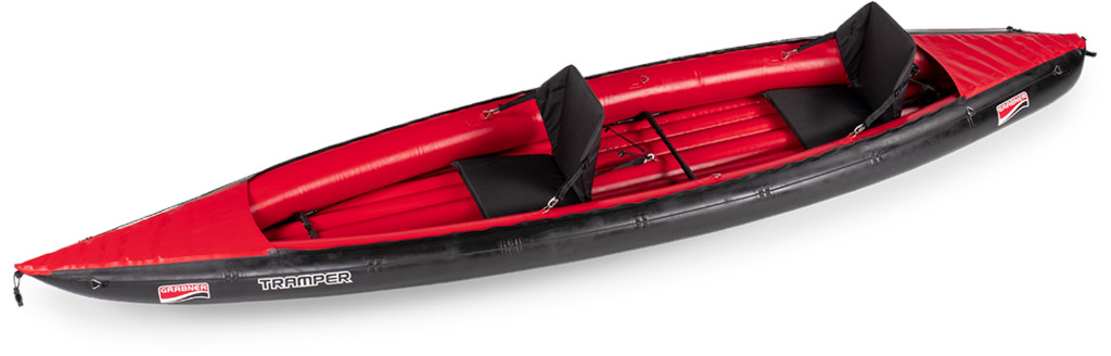 Der neue Grabner Tramper kann als Einer- und als Zweier-Kajak gepaddelt werden (Rückenlehnenbeschläge hinten, vorn und mittig vorhanden). Die Bootsbreite sorgt für eine stabile Wasserlage und dank der entsprechend großen Innenbreite auch für bequemes Sitzen. Packmaß und Gewicht sind absolut reisefreudig.